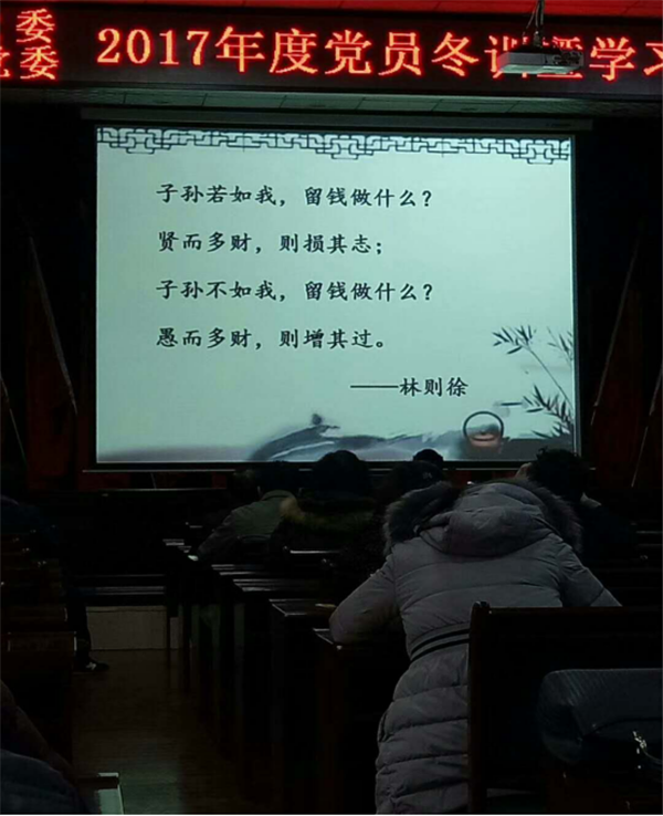 1月23日,進行了開班儀式及學(xué)員黨性、紀律教育;十九大代表賀星龍講解不忘初心,再做貢獻講話;關(guān)于注重家風(fēng)建設(shè),提高思想境界的學(xué)習(xí);十九大新黨章學(xué)習(xí)輔導(dǎo);建設(shè)現(xiàn)代化經(jīng)濟體系與中央經(jīng)濟工作會議解讀。