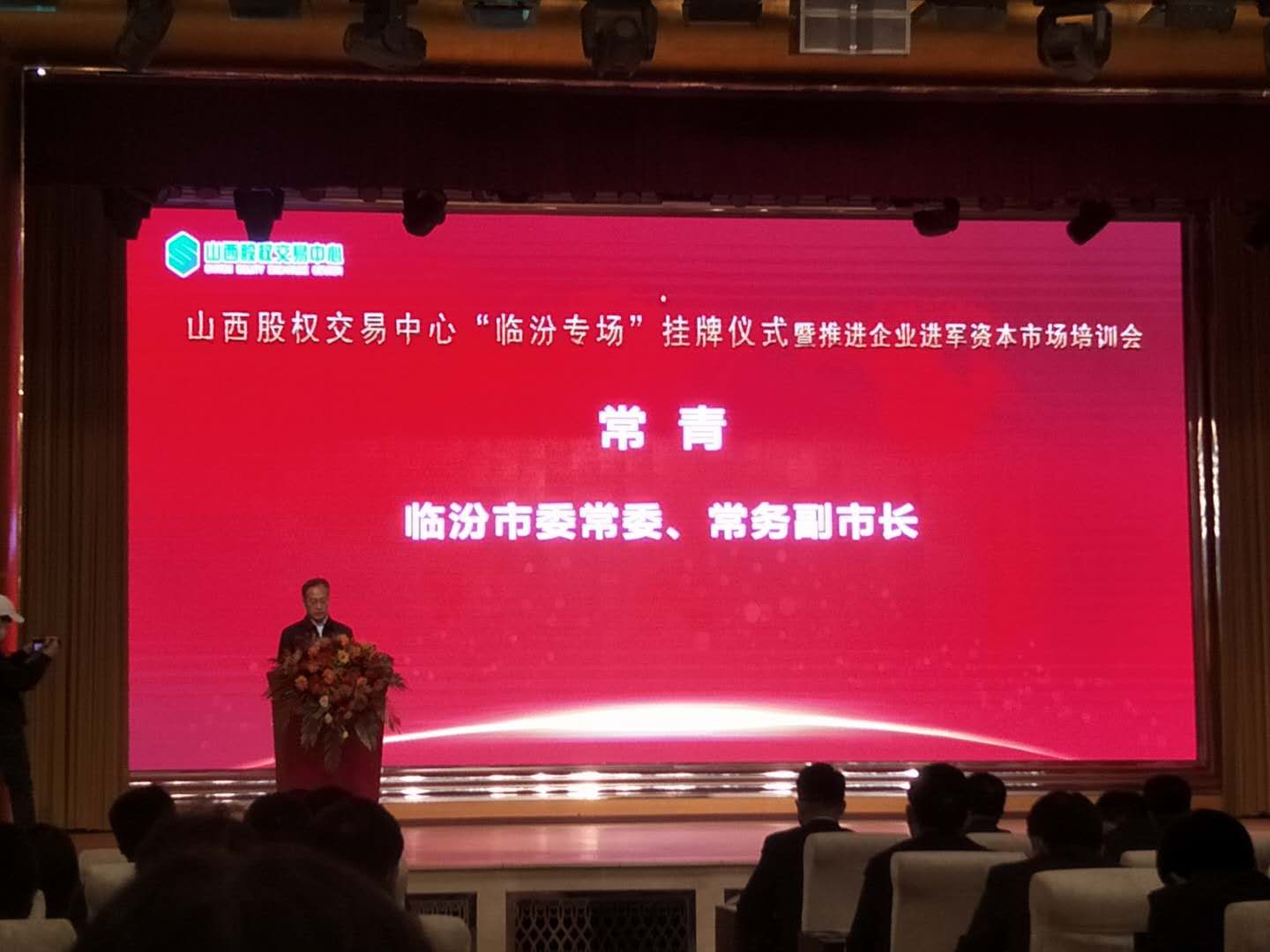 其間,臨汾市委常委、常務(wù)副市長(zhǎng)常青發(fā)表賀辭,山西股權(quán)交易中心黨委書記、總經(jīng)理郭彪發(fā)表講話。